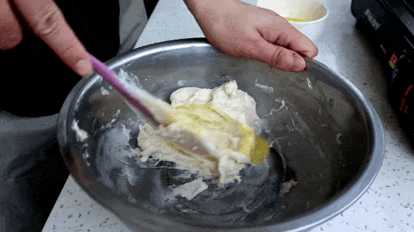 Tips:加盐的目的很简单,就是为了增加糖的甜度;食用油具有松脆和柔软的特性,使烤出的麻糬面包变得酥脆。
