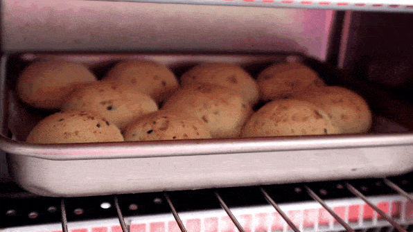 Tips:至此,麻糬包子就做好了。切换到180度的目的是让麻糬面包中的水分变干,这样它们在烘烤后就不会凝结。如果你把它从烤箱里拿出来的时候碎了,那就意味着时间不多了,把它放回烤箱再烤5分钟。