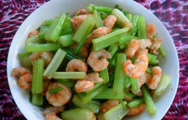 原料:芹菜、盐、虾、油、酱油、姜、蒜