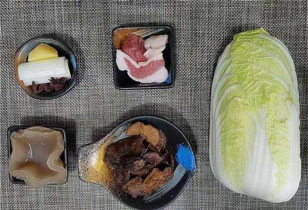 原料:白菜半个,榛子菇50-100克(干),猪肉100克,葱、姜各20克,生抽30克,老抽30克,盐5克。、白糖3克、粉皮(干)30克、适量食用油、香菜30克、鸡精5克、八角2个、香油3克。