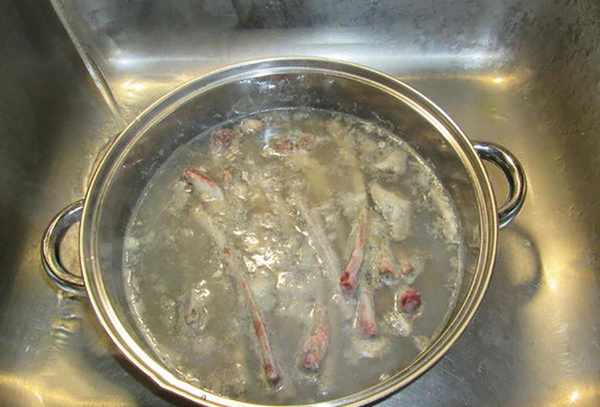 不好意思,这次我用的是宾仔的猪骨。后来我才知道,宾仔的骨头里往往含有重金属。最好不要使用它们。任何高汤都建议在一小时内煮熟,否则食材的营养价值很容易被煮熟流失,尤其是带骨头的汤,容易释放重金属,所以建议煮一小时。锅中放入适量的水,先将水烧开,然后放入骨头焯水,大约一到两分钟后,关火。
