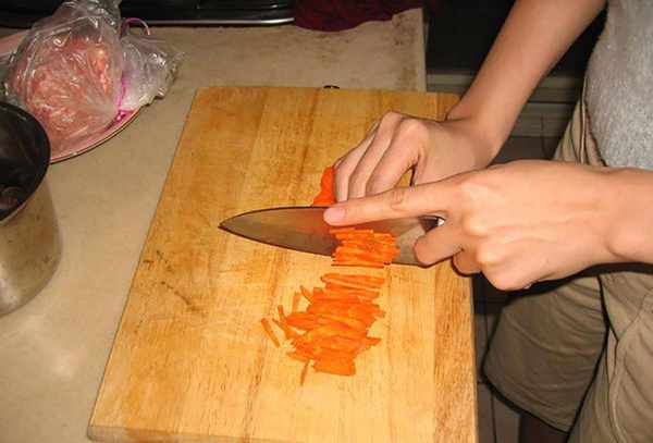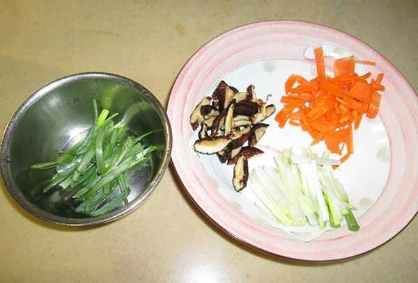 将小葱、胡萝卜和香菇切碎。