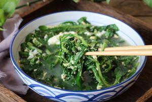厨房小贴士:枸杞子的叶子是一种野菜,而枸杞子的叶子生长环境恶劣,容易滋生虫卵和粪便。不要直接在锅里煮,可以用盐水泡一下,也可以把叶子洗干净,去除有害物质,狼叶吃起来更轻松。在煮这道素汤之前,需要调好鸡蛋。不要使用植物油。使用猪油做更美味的烹饪。先加入月桂叶,再加入蛋液。记得先用大火煮开,再用小火加入鸡蛋,以免鸡蛋起泡影响这道汤的颜色。最后蘸一下,撒上葱花搅拌均匀就可以出锅了。