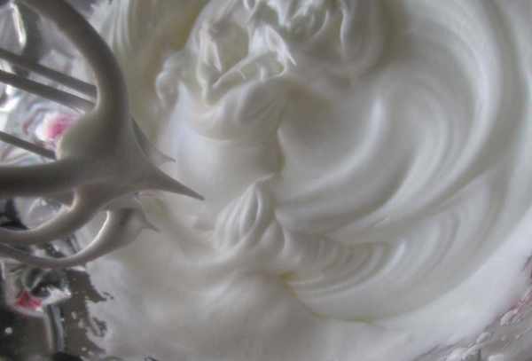 第二步:加入糖打发蛋白霜,将打蛋器抬起,可以看到打在打蛋器上的蛋白霜呈直角。蛋黄中加入牛奶和玉米油,搅拌均匀。筛入面粉,搅拌均匀,形成蛋黄糊。蛋白霜分三次加入蛋黄混合物中,搅拌均匀,形成蛋糕面糊。
