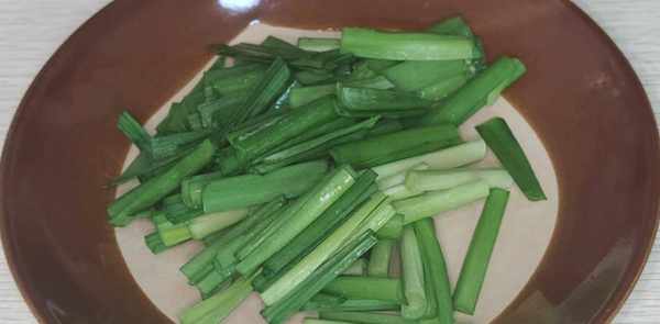 1.干香洗净切几片切条,装盘待用;将一小把韭菜洗净切块。