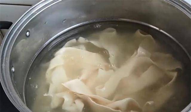 5.锅里的水烧开后,开始煮面条。自制面条可以煮2-3卷。两到三卷是什么意思?锅里的水烧开后,将面条放入锅中,盖上锅盖。锅烧开后,加入适量冷水。三滚后加入少许冷水,关火即可捞出面条。