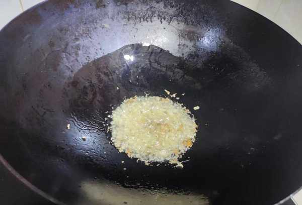 3、锅内倒入油,姜切碎,放入锅中小火炒香;