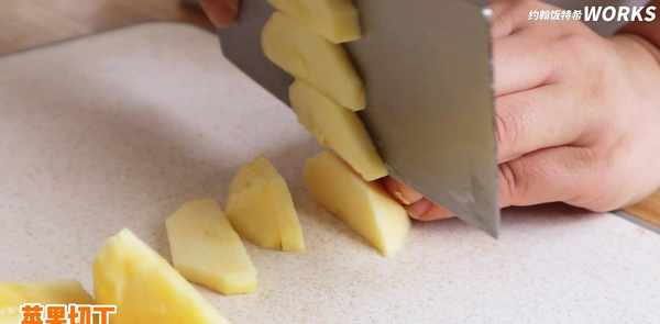 第一步:准备一个小苹果,洗净去皮,然后切成小方块。总重量约为150-170克。