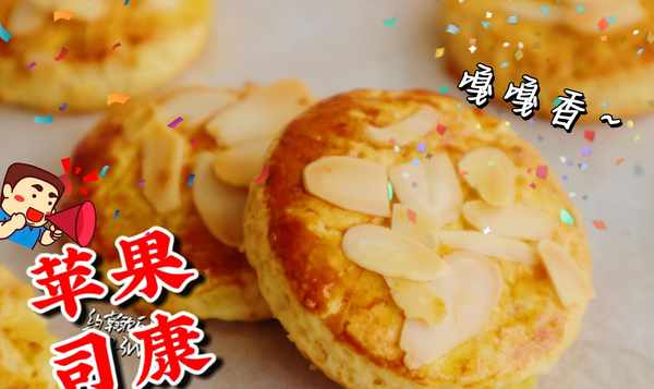 所需材料:丁150克苹果、黄油20克、白糖15克、低筋面粉200克、白poutine、泡打粉5克、黄油50克、牛奶50-70克、杏仁片