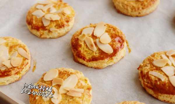 180度的烤箱温度只能作为参考,每个品牌的烤箱温度都会不一样。参考时间170-200之间,参考时间20-30分钟;蛋液是蛋黄,没有蛋清;叫杏仁片,不要用普通的杏仁片,不好吃。