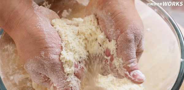 第五步:用手揉至黄油散开,大致如下图。(一定要揉均匀)