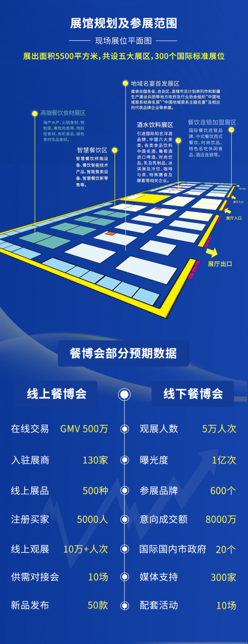 本届HICCON餐博会展出面积5500平米,共设智慧餐饮展区、餐饮连锁加盟展区、高端餐饮食材展区、酒水饮料展区、地域名宴首发展区等五大展区,涵盖智慧餐饮终端设备、餐饮智能技术产品、智能售卖设备、智慧餐饮新零售、中式餐饮、西式餐饮、时尚饮品、海产水产、火锅食材、预制菜等20大品类,300个国际标准展位。