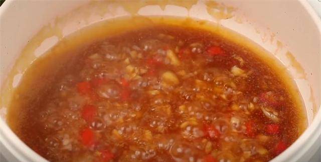 6.锅内加入食用油,加入切碎的蒜头和香蕉爆香,加盐,加少许糖,加1勺生抽,加1勺素蚝油,炒匀。好了,然后加入一碗水淀粉,然后用大火煮沸,煮至浓稠后关火待用。
