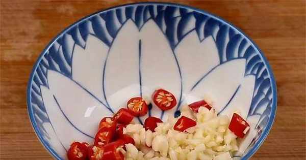 2.然后准备一些小米椒,切成圈,然后切碎的蒜,切好放在碗里待用。
