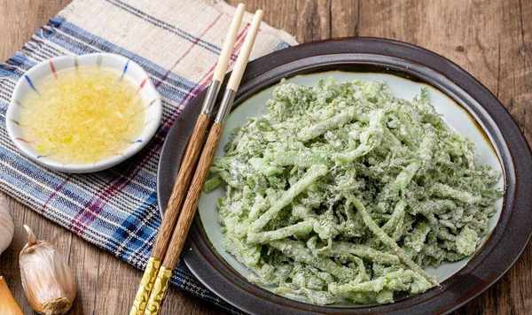 1、菊花洗净后,检查水分,切成长条,放入锅中,滴两滴食用油,拌匀,菊花锁住水分,撒一层面粉,拌匀,再撒上一层玉米粉,搅拌均匀,给菊花盖上一层面粉。2.锅内加水烧开,将菊花放在筐上,大火煮8分钟后熄火,起锅。清蒸菊花可以直接食用。它又香又好吃。也可以捣碎一些大蒜,加入生抽、香油调成酱汁。红烧菊花,蘸蒜蓉,开胃下饭!