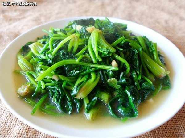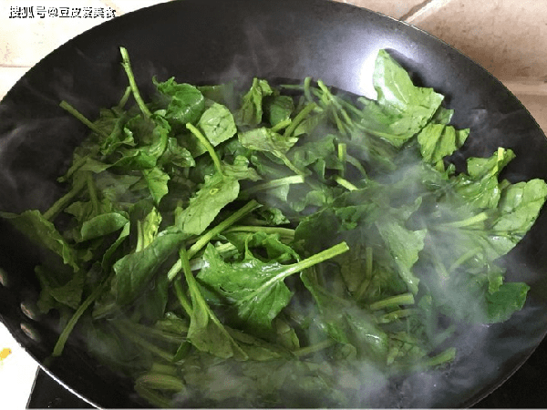 4、起锅烧油,下入适量的盐,再下入蒜末,翻炒出香味,下入菠菜,快速翻炒1分钟左右,出锅,完成。