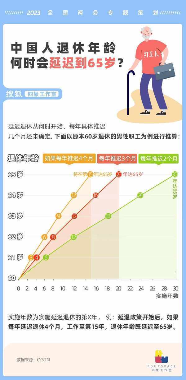 为了应对老龄化和劳动力不足的人口问题,全球许多国家都实施了延迟退休的政策。我国现行法定退休年龄为男职工60周岁、女干部55周岁、女工人50周岁,一步提高到65岁并不现实,因此“渐进式延迟”十分必要。