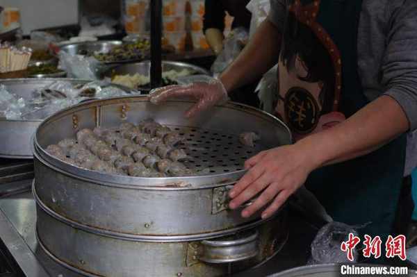图为青云菜市内正在贩卖的水晶虾皮饺。 林馨 摄