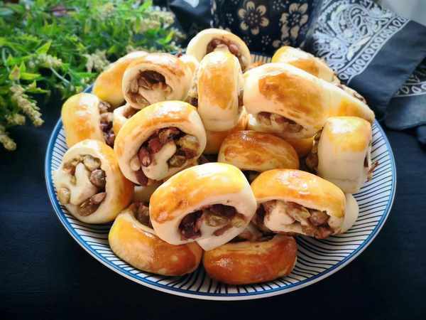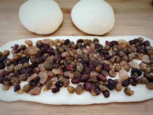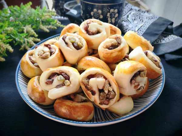 食材:面粉、牛奶、蜜豆、酵母、黄油。