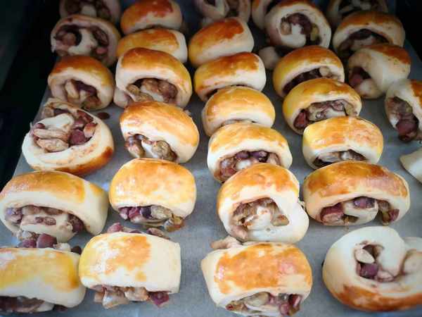 7、烤箱预热,上下火180度,烤制15分钟,美味的烤红蜜豆卷就做好了,不同的烤箱温度也存在差异,烤的时候还是要多观察,依据情况调整温度。