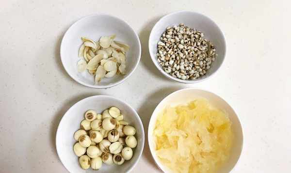 准备食材:薏米50克左右,鹌鹑蛋10个左右(鹌鹑蛋壳一定要完整),干莲子40克左右,百合10克左右,银耳8克,枸杞子20克,约15克糖和1500毫升水,否则。