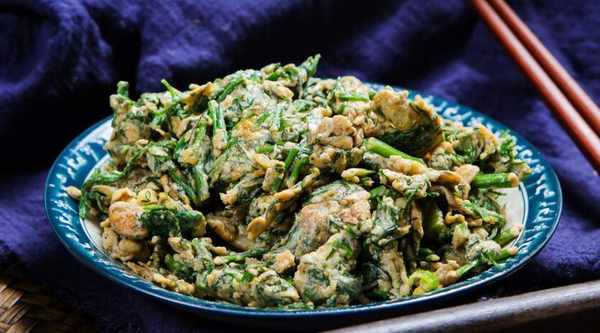 厨房小贴士:烹调茴香并不难,但茴香一定要新鲜、清香,叶子要翠绿,茴香一定要用盐水泡去污垢,茴香要切碎。准备好鸡蛋水,然后把茴香用油炸香,加入鸡蛋一起炒,鸡蛋很香,味道也很淡,最后放调料,别放了。加味精和鸡精,会影响头蛋的鲜味和质地。