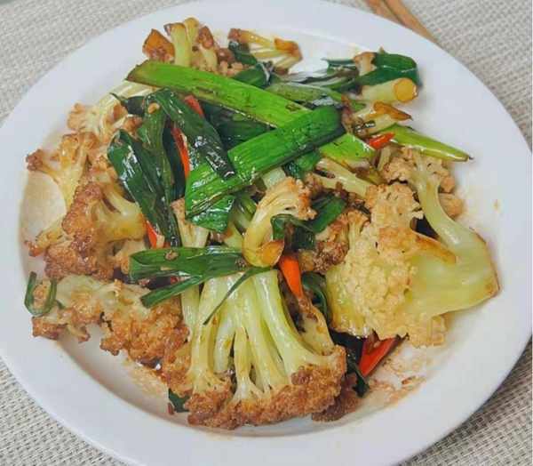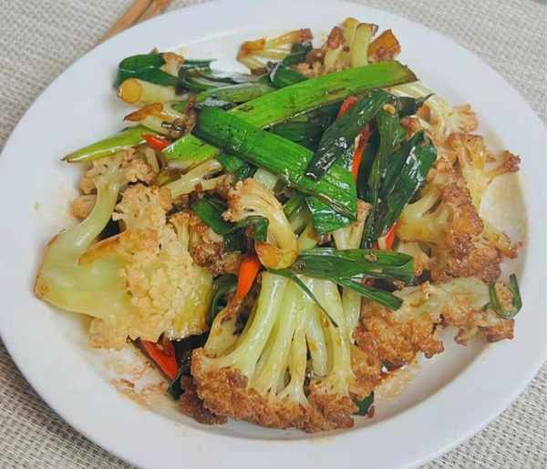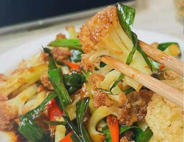 韭菜花菜烧五花肉是春天特别受欢迎的蔬菜。韭菜被称为“春天的第一鲜”。叶子含有维生素和草酸,具有独特的香味。菜花和五花肉的口感松脆可口,满足味蕾的需要,经常食用不会发胖。