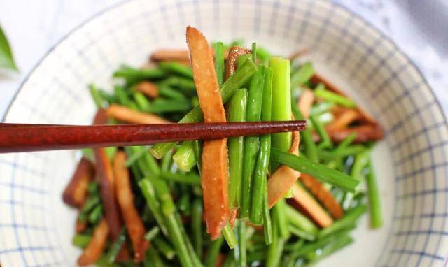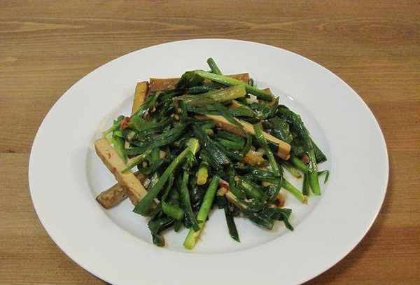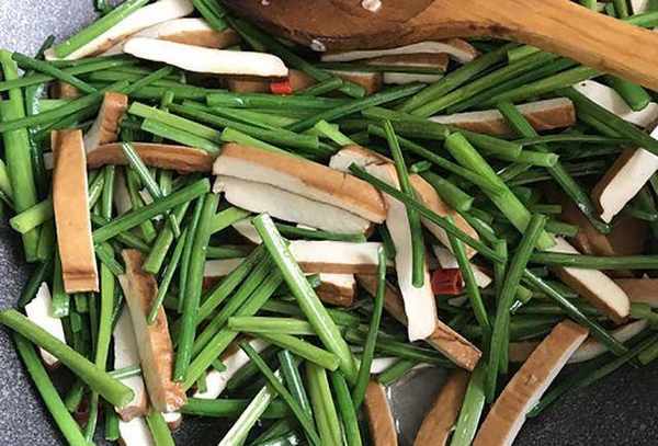 是一道非常简单易驾驭的美食。制作这道美食大约需要10分钟。也非常的新鲜可口,还有提味、助消化的作用。不喜欢吃香干的朋友,也可以用韭菜苔和一些肉丝来炒。味道比炒韭菜要清爽温和许多。喜欢吃辣的可以加少许老干油或辣椒油调味。当你站起来时,它甚至更美味。