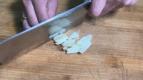 1. 大蒜几粒先切成蒜片,再剁成蒜末