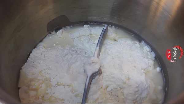 1、300克面粉里加入一勺盐增加筋性,再加入一小勺碱面,用160毫升的清水和面,由于不同的面粉吸水性不同,和面的时候水一点点加。揉好的面醒上20分钟。