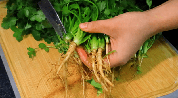 1、准备适量香菜清洗干净后,切掉根部,香菜再购买的时候尽量选择小一点的,太长太粗的香菜口感太老。