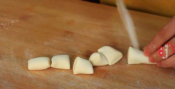 4、醒好的面不用再揉了,放到案板上按压成饼,然后切成长条,最后切成大小均匀的小剂子。