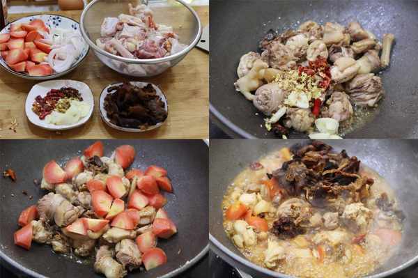 准备食材:三黄鸡半只、胡萝卜一根、茶树菇、洋葱、干辣椒、生姜、花椒。