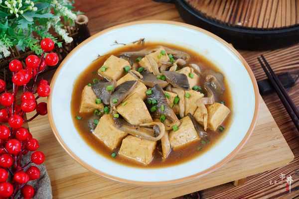 4、加入泡发的茶树菇,盖上锅盖焖煮25分钟,出锅前加入适量的盐和鸡精搅拌均匀即可。