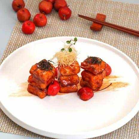 1. 鳕鱼改大块用腌料腌制十分钟待用,山楂一切为二,洗净去除核待用;