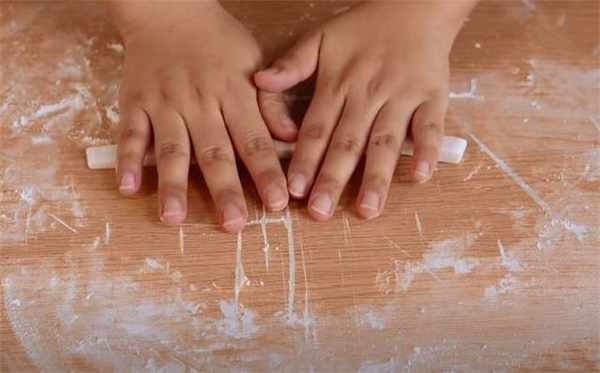 6.我们把长条稍微的搓一下,搓到圆润的状态。