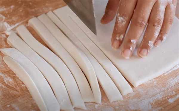 5.擀好之后切成长条。