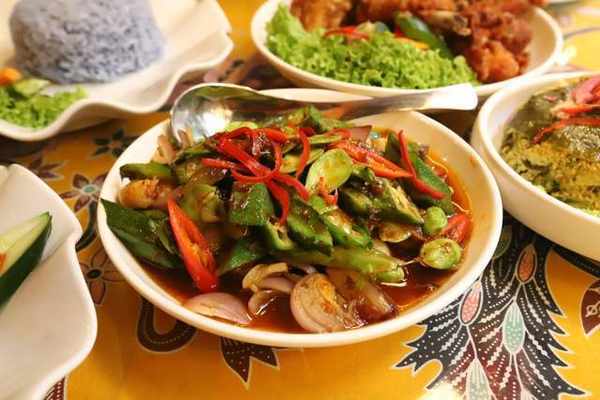 我们点了一些当地的招牌菜,比如鲤鱼包、香茅炸鸡、羊角豆四角豆炒三,酸辣魔鬼鱼咖喱、香茅柠檬苏打。