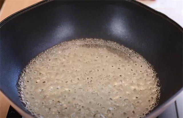 4.熬糖浆的时候放350g的白糖,200g的清水,先开中火把糖水煮沸,看到这种沸腾的状态之后,我们就转小火。