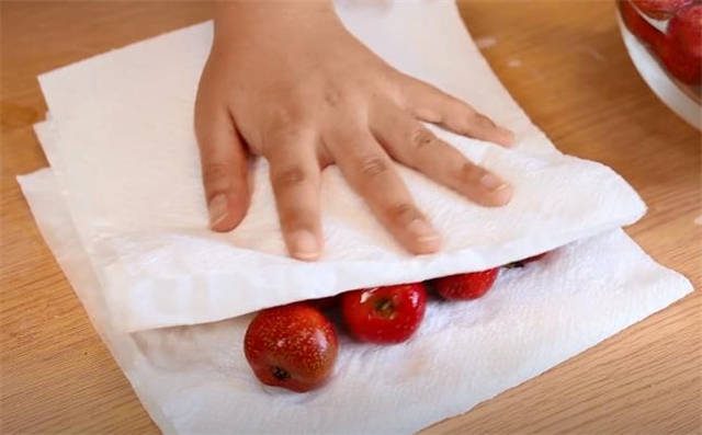 2.用厨房纸把表面水分擦干,这样挂糖浆的时候会挂的比较多。