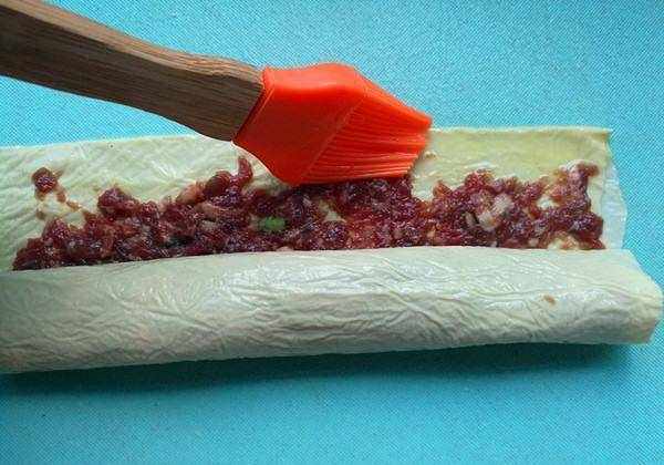卷起来,边上刷上蛋液。