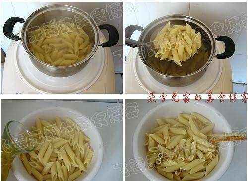 2,意面我用的是两头尖通心粉,你也可以用长条的或是其他形状的都可