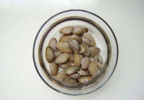 2 蛤蜊用盐水泡1个小时,吐尽泥沙
