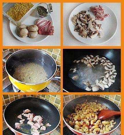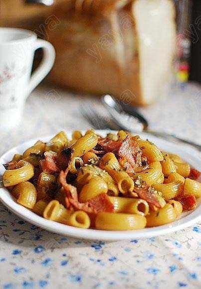 培根口蘑炒通粉: