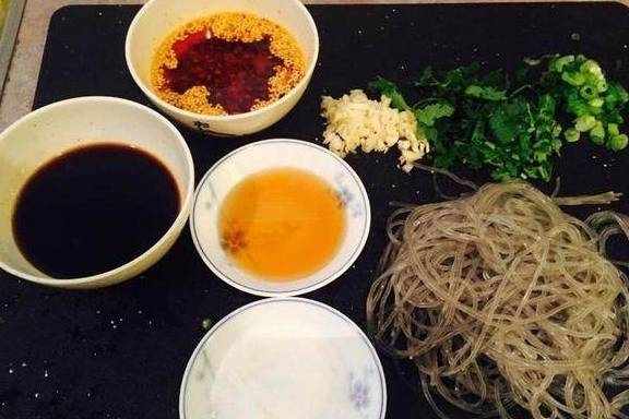 需要用到粉条,我用的是红薯粉。其实土豆粉豌豆粉都可以,看你们本地爱吃什么粉,我的老家不缺的就是土豆,都是没有污染的天然土豆、红薯,所以几乎天天吃粉条。辣椒、盐、生抽、醋等等各种调味料。