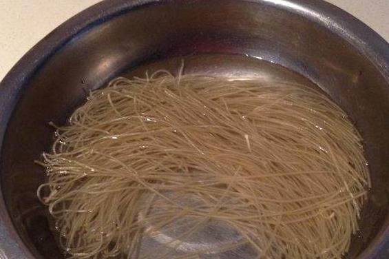先用冷水把粉条泡软一些,一会煮的时候才劲道,也容易熟。直接用开水煮是熟不了的。