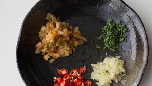 可以准备一点酸菜,太椒、蒜苗、蒜末提味。