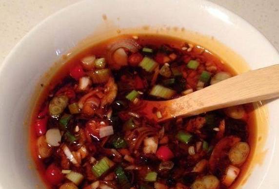 把葱、辣椒、花椒油、蒜末、蒜苗、盐、生抽、混合在一起,再加一点白糖调成酸辣汁。