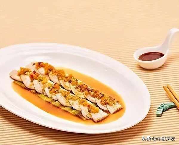 2. 燕窝发好用少许清鸡汤、少许浓缩鸡汁、猪油调味蒸热后冷藏,用50克鱼肉包裹10克结冻的燕窝成团;