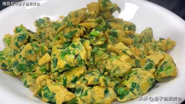 - 接下来把锅烧热,加入少许食用油,油热后把韭菜、鸡蛋倒入锅中,开小火给它慢慢的煎,用铲子轻轻地推,等鸡蛋定型加入少许的食盐,少许的鸡精,一点点的胡椒粉,再加入少许的生抽,翻炒均匀后就可以出锅了,装入盘中就可以美美的享用了。